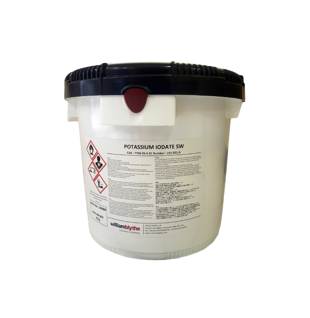 ผลิตภัณฑ์ Potassium Iodate มีคุณภาพสูงของ William Blythe ตรงตามข้อกำหนดของ Food Chemicals Codex สำหรับการผลิตอาหาร ใช้ในอุตสาหกรรมอาหาร, ยาและเกษตรกรรม